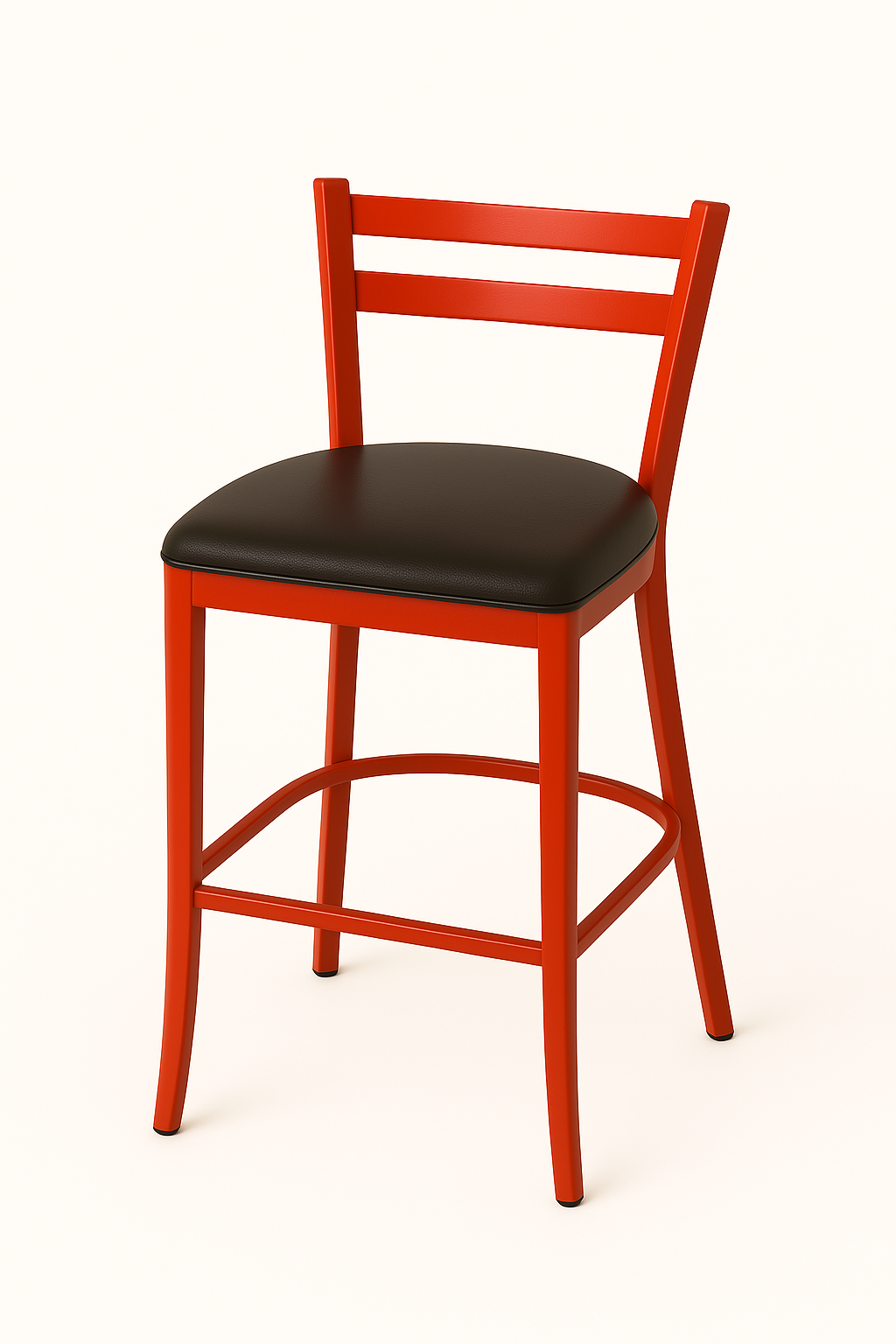 + Free ShippingSilla metálica con estructura pintada en rojo, respaldo de lamas horizontales y asiento acolchado en tela negra resistente a manchas.